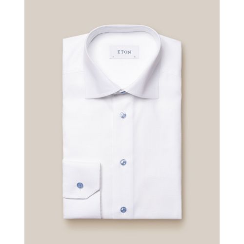 Eton Slim Fit - White Solid Signature Twill Geometric Effect Shirt