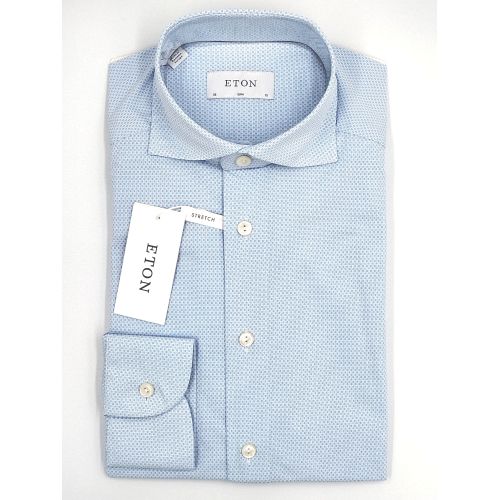 Eton Slim Fit - Light blue Geometric Effect Signature Twill Shirt